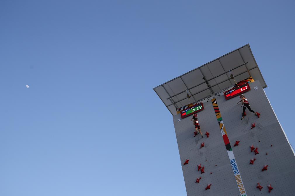 速度攀岩拥有将残酷和不确定性拉满的赛制。在15米高的标准赛道上,高水平女子选手只需6秒多即可攀登到顶。而进入16强赛后,比赛开始采用一对一的淘汰制,一攀定胜败,任何微小的失误,都可能葬送争冠机会。