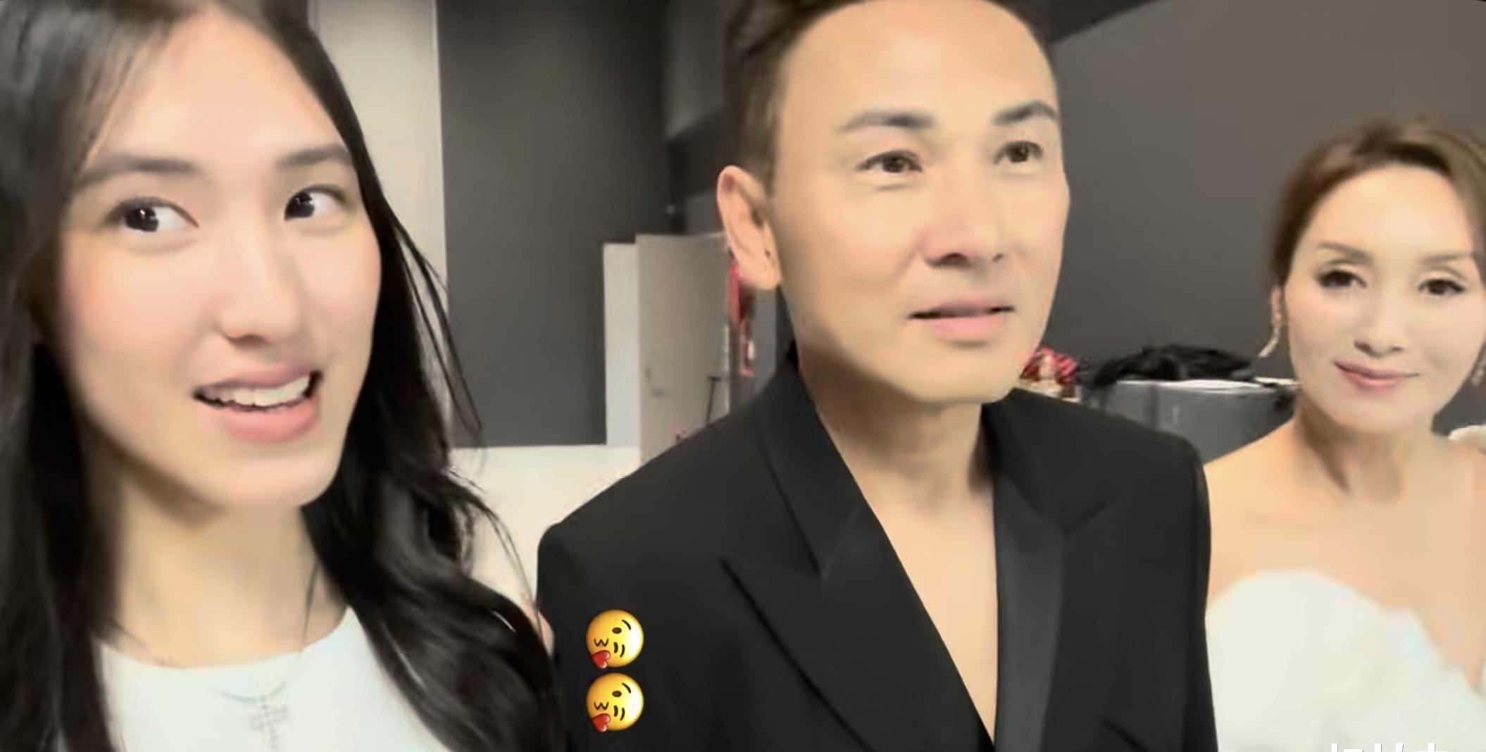 郭可盈夫妇当天盛装出席颁奖典礼,夫妻俩以黑白配示人。郭可盈穿了白色的长裙,裙身下摆以贴身剪裁为主,展露出身段,上半身则显得很隆重。而林文龙则是穿黑色西装,上半身不打底,展现成熟魅力。而林天若当晚以白色的长裙为主,打扮上很简约,但是因为年轻,满脸的胶原蛋白,又充满了青春活力,她在后台与父母自拍的时候,状态比父母还好,那是越发地美丽、大方,完美遗传了父母在颜值上的优良基因。