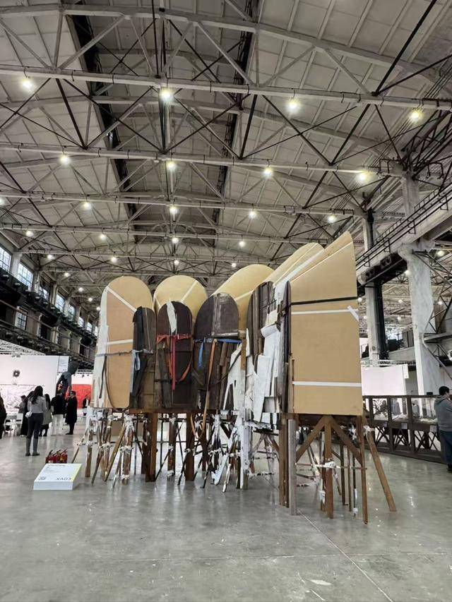 今年,我像往常那样去参观2025年西岸艺术与设计博览会。然而,当我踏入西岸艺术中心A馆,也就是以往数届西岸艺博会的核心场馆时,蓦然发现,这里一改往日用标准白盒子的那种精致主义展示方式,而是突破传统展位限制,直接在超大的建筑空间中呈现作品。其中,上海知名艺术家邱加用废旧家具与简陋木构搭建的一组大型装置艺术《顽固的丛林》,赫然矗立在展馆中央。