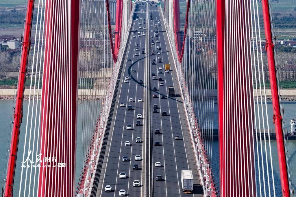 2026年2月21日,安徽铜陵,G3京台高速铜陵长江三桥迎来春运返程车流。储著传摄(人民图片网)